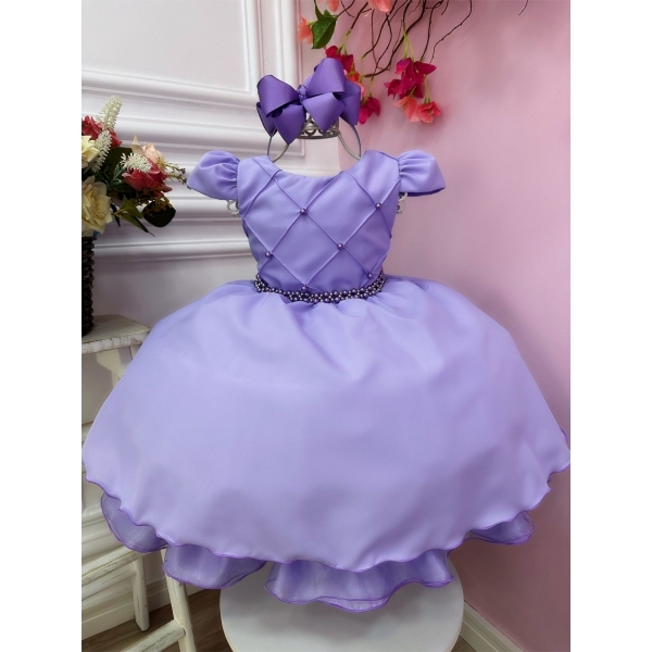 Informações do produto: Vestido Infantil Lilás C/ Cinto de Pérolas Casamento Luxo